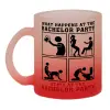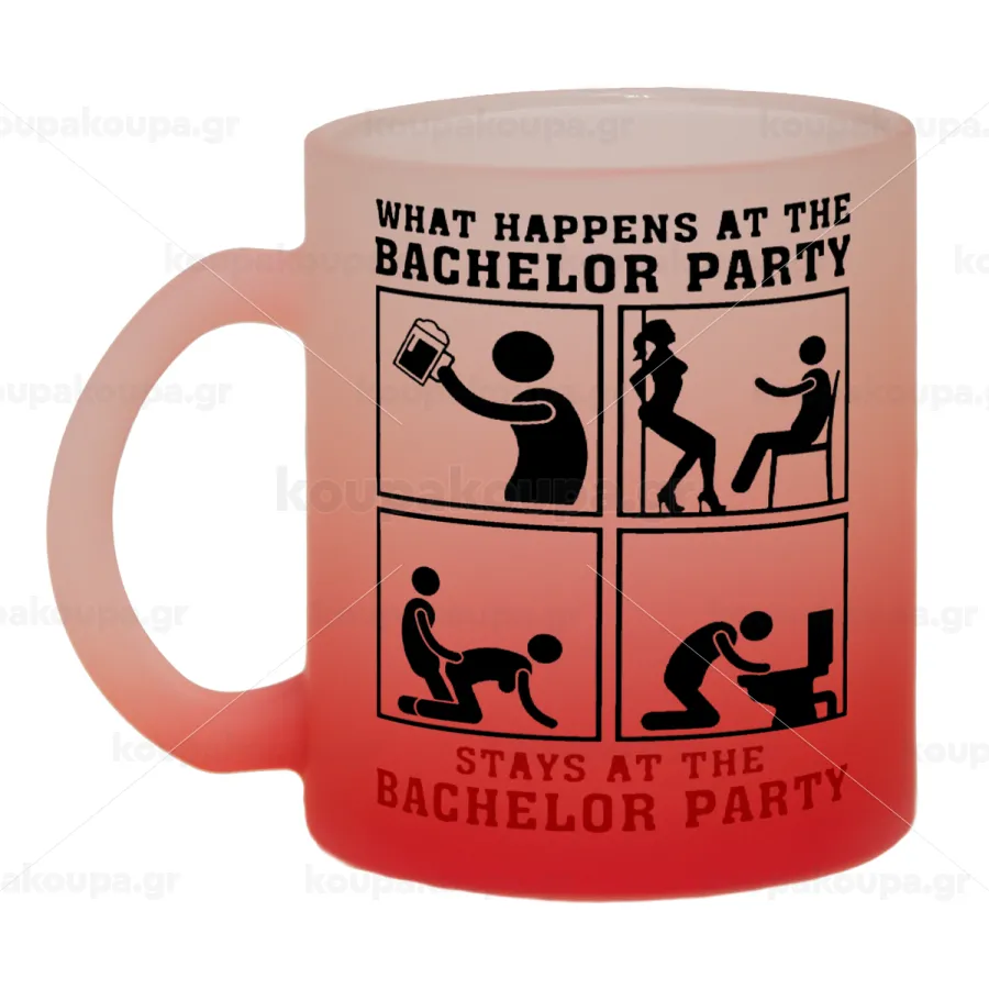 What happens at the bachelor party, stays at the bachelor party!, Κούπα γυάλινη δίχρωμη με βάση το κόκκινο ματ, 330ml