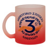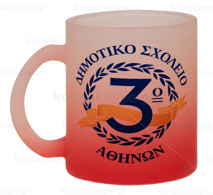 Έμβλημα Σχολικό μπλε, Κούπα γυάλινη δίχρωμη με βάση το κόκκινο ματ, 330ml