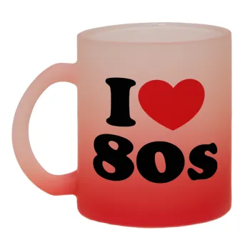 I Love 80s, Κούπα γυάλινη δίχρωμη με βάση το κόκκινο ματ, 330ml