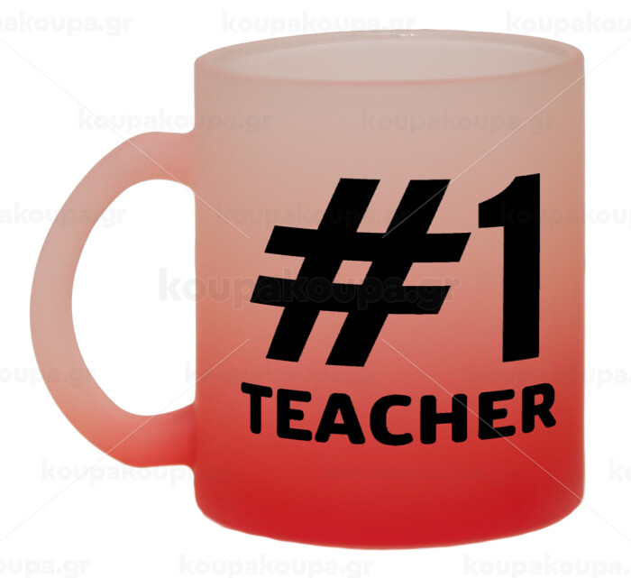 #1 teacher, Κούπα γυάλινη δίχρωμη με βάση το κόκκινο ματ, 330ml