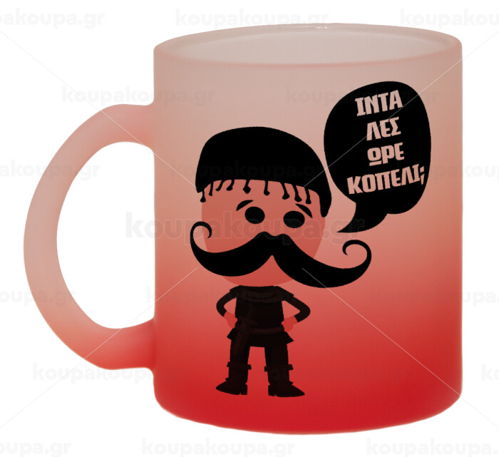 Κρητικός "Ίντα λες ωρέ κοπέλι", Κούπα γυάλινη δίχρωμη με βάση το κόκκινο ματ, 330ml