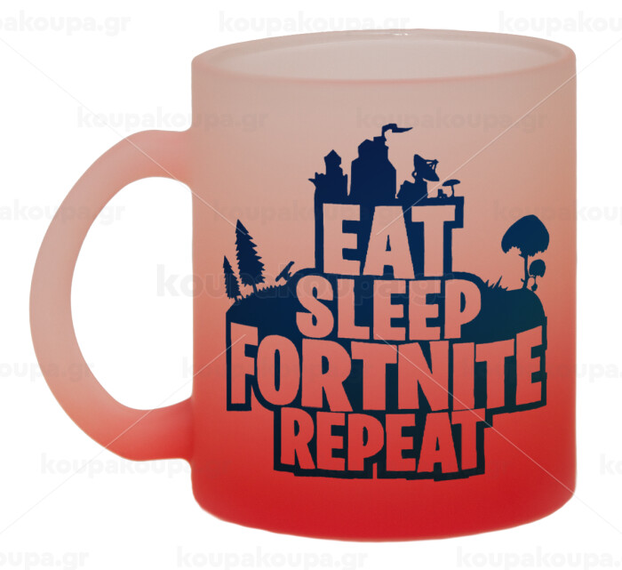 Eat Sleep Fortnite Repeat, Κούπα γυάλινη δίχρωμη με βάση το κόκκινο ματ, 330ml