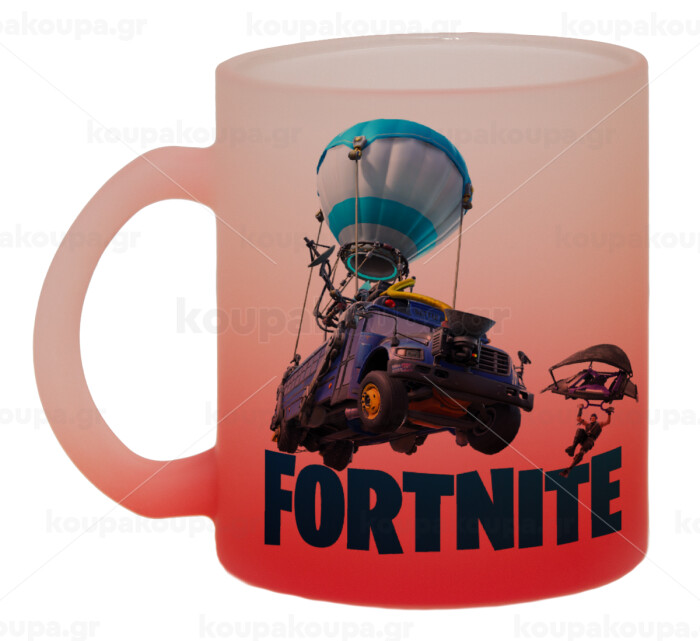 Fortnite Bus, Κούπα γυάλινη δίχρωμη με βάση το κόκκινο ματ, 330ml