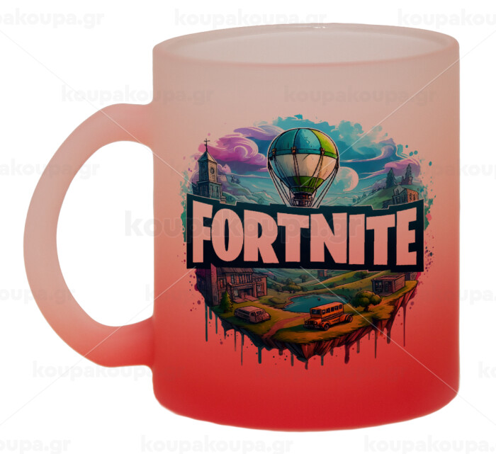 Fortnite land, Κούπα γυάλινη δίχρωμη με βάση το κόκκινο ματ, 330ml