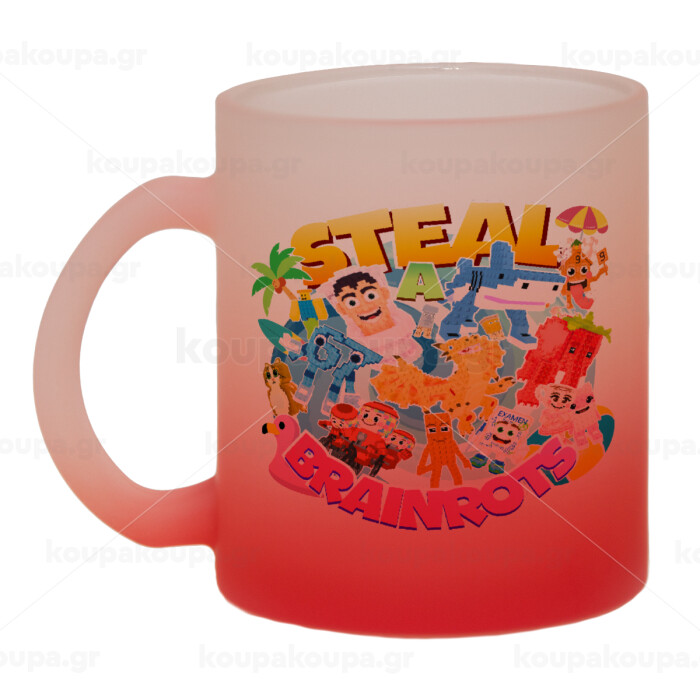 Roblox Steal a Brainrot, Κούπα γυάλινη δίχρωμη με βάση το κόκκινο ματ, 330ml