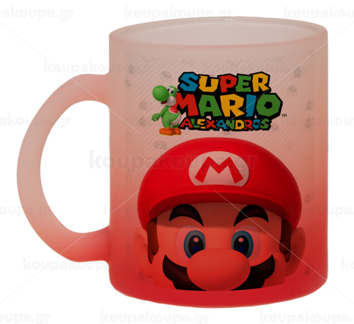 Super mario head, Κούπα γυάλινη δίχρωμη με βάση το κόκκινο ματ, 330ml