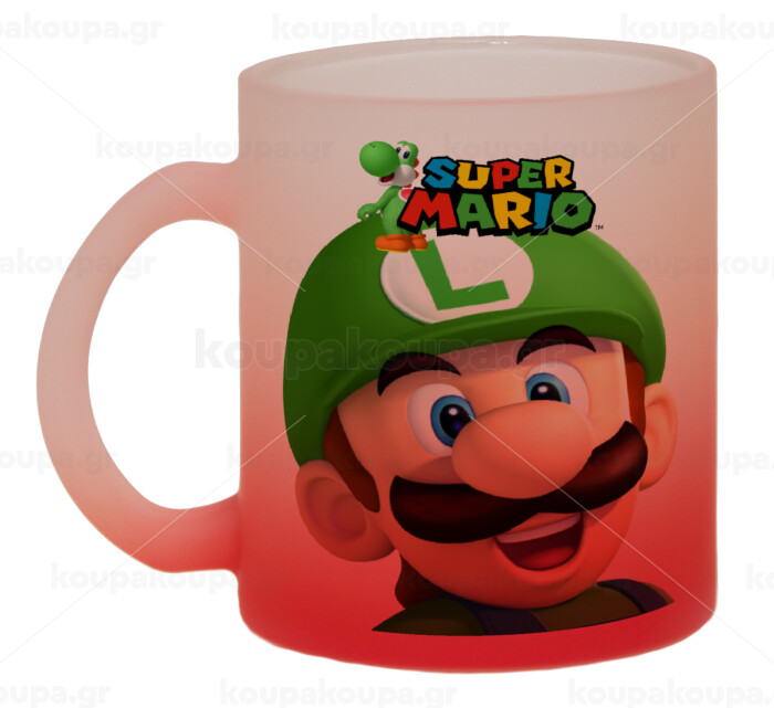 Super mario Luigi, Κούπα γυάλινη δίχρωμη με βάση το κόκκινο ματ, 330ml