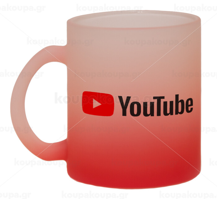 Youtube, Κούπα γυάλινη δίχρωμη με βάση το κόκκινο ματ, 330ml