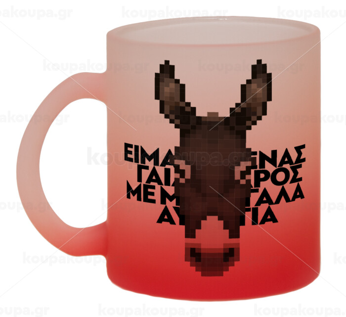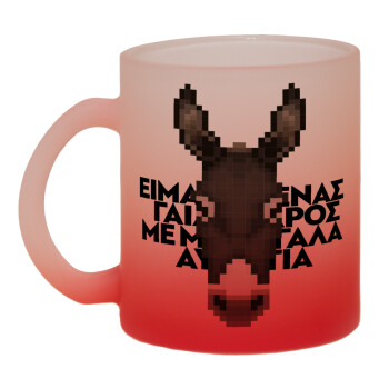 Είμαι ένας γάιδαρος με μεγάλα αυτιά., Κούπα γυάλινη δίχρωμη με βάση το κόκκινο ματ, 330ml