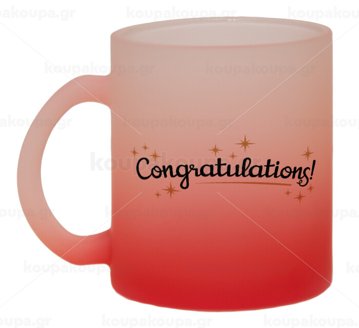 Congratulations, Κούπα γυάλινη δίχρωμη με βάση το κόκκινο ματ, 330ml