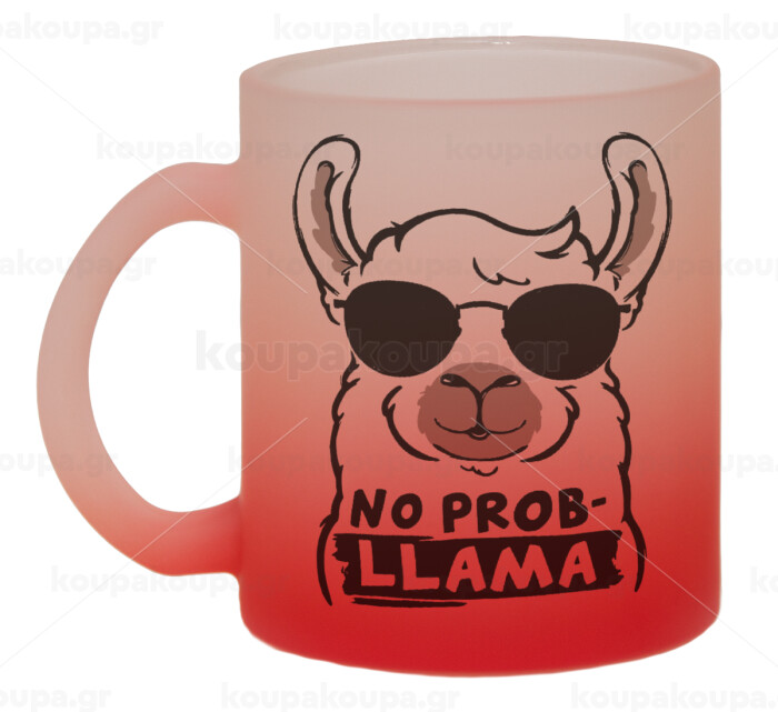 No Prob Llama, Κούπα γυάλινη δίχρωμη με βάση το κόκκινο ματ, 330ml