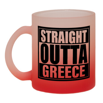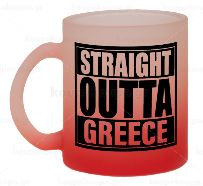Straight Outta greece, Κούπα γυάλινη δίχρωμη με βάση το κόκκινο ματ, 330ml