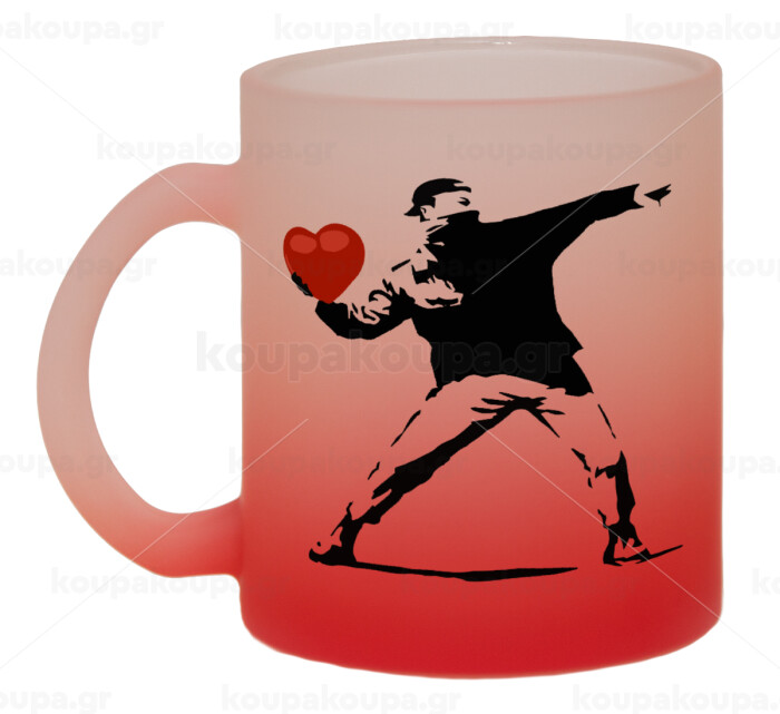Banksy (The heart thrower), Κούπα γυάλινη δίχρωμη με βάση το κόκκινο ματ, 330ml