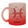 Ζώδια Ιχθύες, Κούπα γυάλινη δίχρωμη με βάση το κόκκινο ματ, 330ml