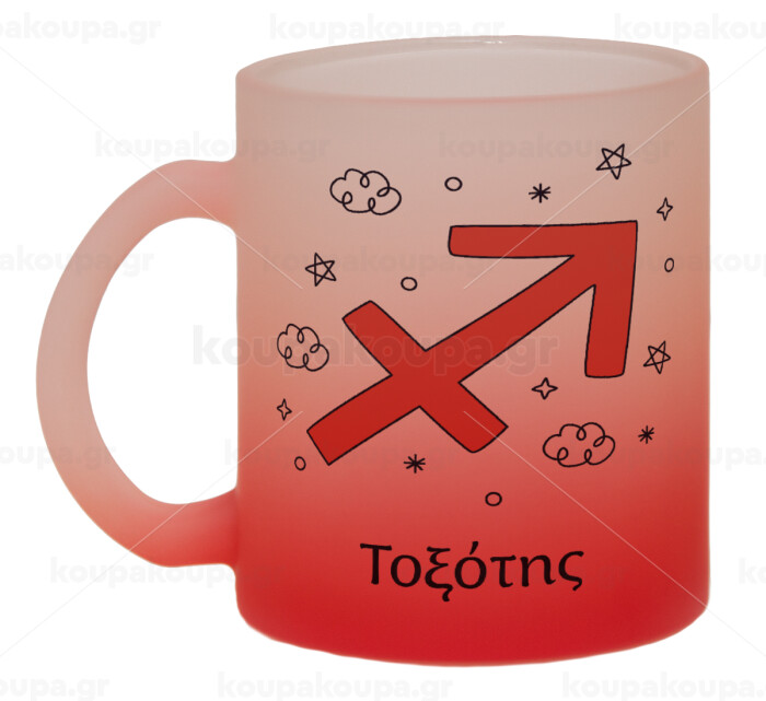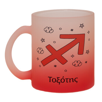 Ζώδια Τοξότης, Κούπα γυάλινη δίχρωμη με βάση το κόκκινο ματ, 330ml