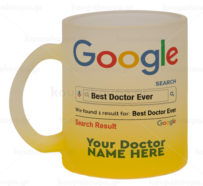 Searching for Best Doctor Ever..., Κούπα γυάλινη δίχρωμη με βάση το κίτρινο ματ, 330ml
