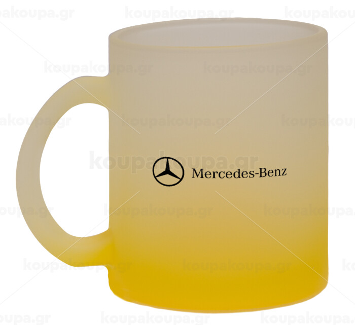 Mercedes small logo, Κούπα γυάλινη δίχρωμη με βάση το κίτρινο ματ, 330ml
