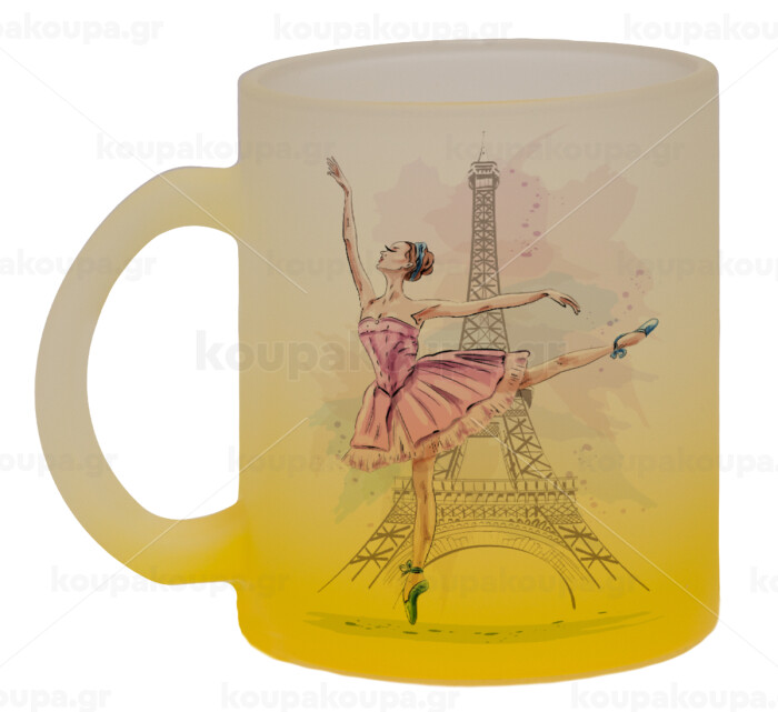 Ballerina in Paris, Κούπα γυάλινη δίχρωμη με βάση το κίτρινο ματ, 330ml