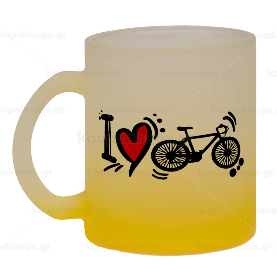 I love my bike, Κούπα γυάλινη δίχρωμη με βάση το κίτρινο ματ, 330ml