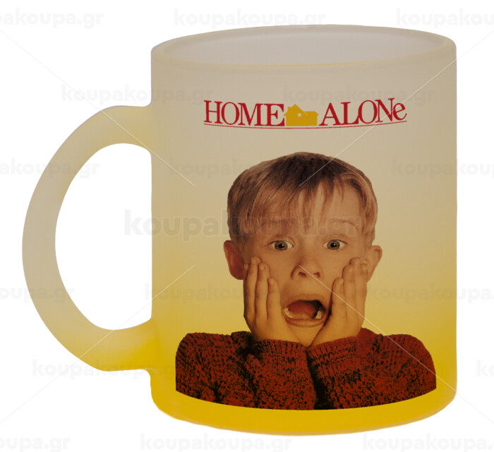 Μόνος στο σπίτι Kevin McCallister Shocked, Κούπα γυάλινη δίχρωμη με βάση το κίτρινο ματ, 330ml