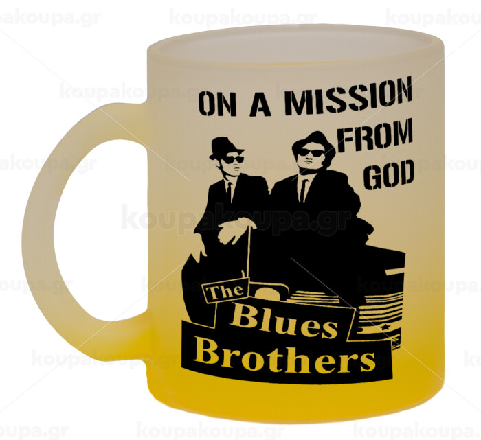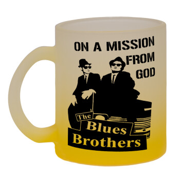 Blues brothers on a mission from God, Κούπα γυάλινη δίχρωμη με βάση το κίτρινο ματ, 330ml