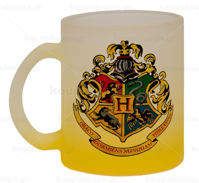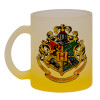 Hogwart's, Κούπα γυάλινη δίχρωμη με βάση το κίτρινο ματ, 330ml
