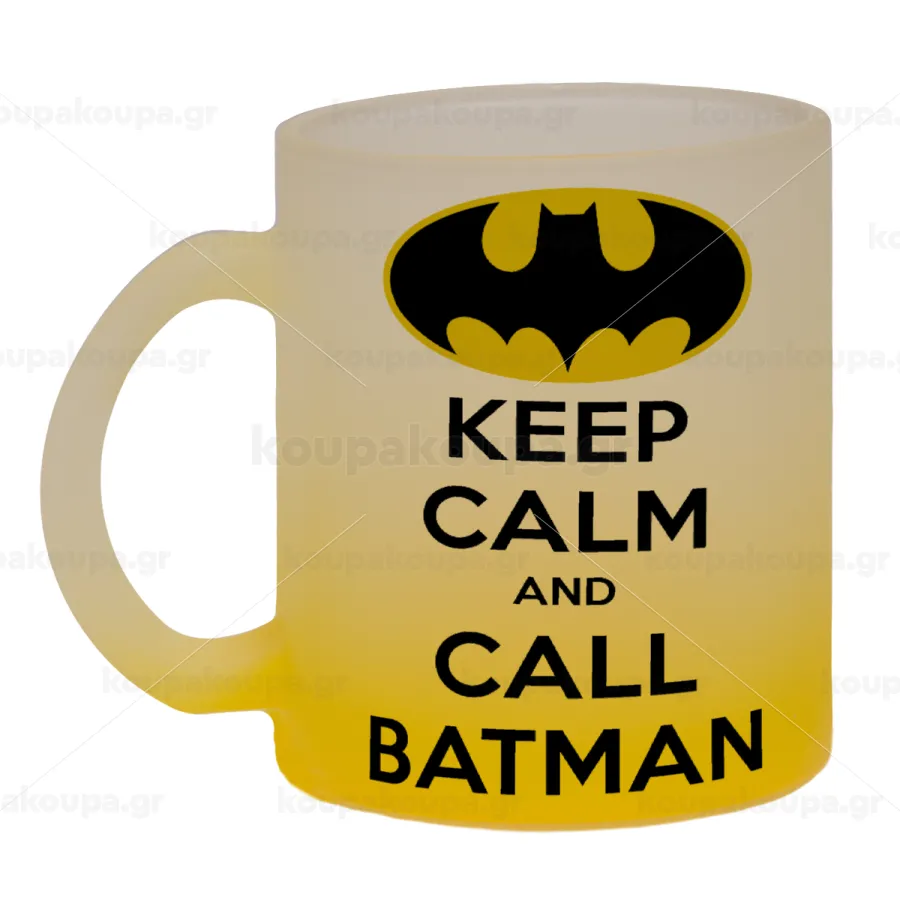 KEEP CALM & Call BATMAN, Κούπα γυάλινη δίχρωμη με βάση το κίτρινο ματ, 330ml
