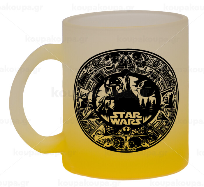 Star Wars Disk, Κούπα γυάλινη δίχρωμη με βάση το κίτρινο ματ, 330ml