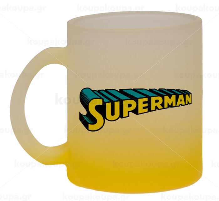 Superman vintage, Κούπα γυάλινη δίχρωμη με βάση το κίτρινο ματ, 330ml