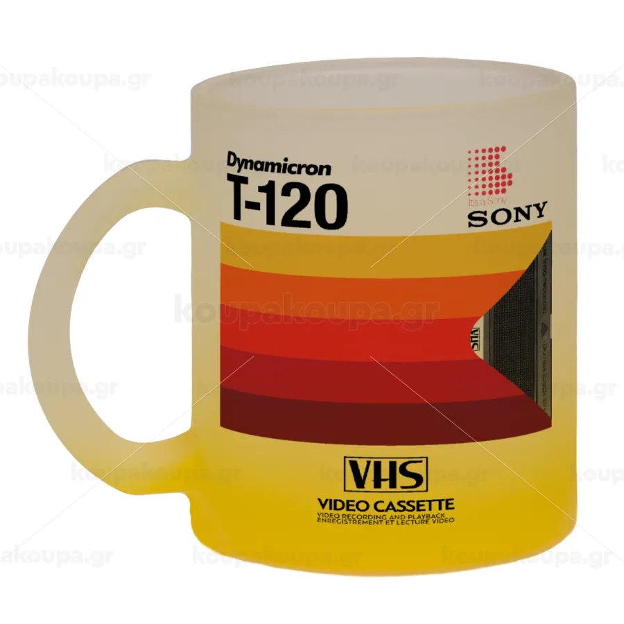 VHS sony dynamicron T-120, Κούπα γυάλινη δίχρωμη με βάση το κίτρινο ματ, 330ml