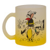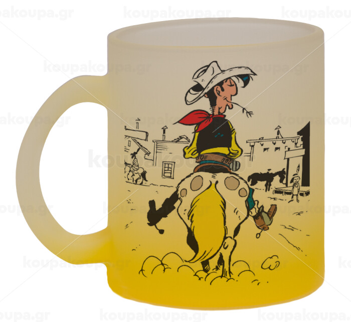Λούκυ Λουκ comic, Κούπα γυάλινη δίχρωμη με βάση το κίτρινο ματ, 330ml