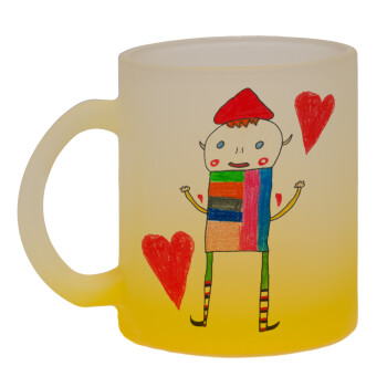 Ο Αλέξανδρος ζωγραφίζει την Αγάπη, Κούπα γυάλινη δίχρωμη με βάση το κίτρινο ματ, 330ml