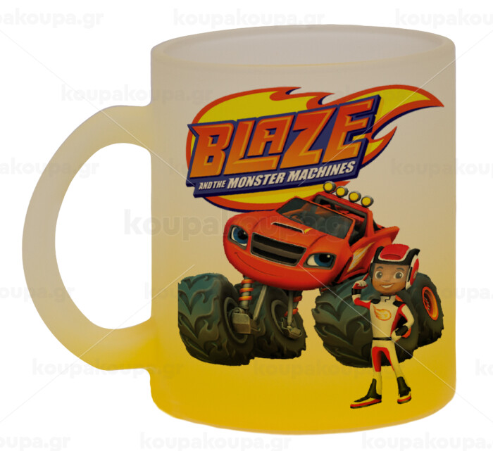 Ο Μπλέιζ και οι Φίλοι του, Κούπα γυάλινη δίχρωμη με βάση το κίτρινο ματ, 330ml
