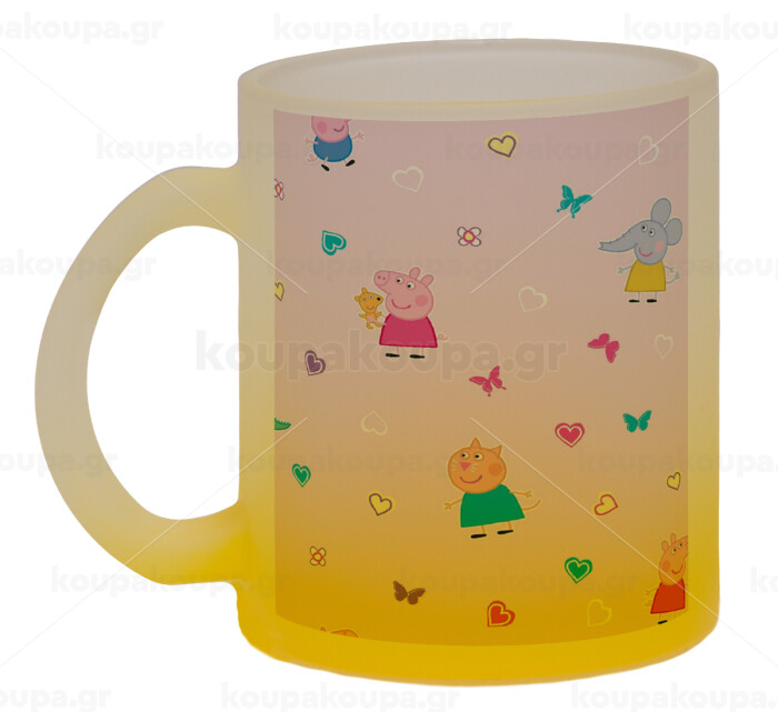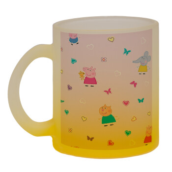Πέππα το γουρουνάκι και οι φίλοι της, Κούπα γυάλινη δίχρωμη με βάση το κίτρινο ματ, 330ml