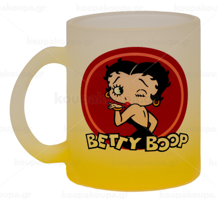 Betty Boop kiss, Κούπα γυάλινη δίχρωμη με βάση το κίτρινο ματ, 330ml