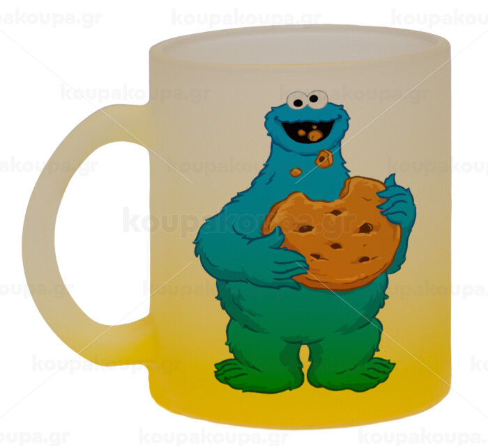 Cookie Monster, Κούπα γυάλινη δίχρωμη με βάση το κίτρινο ματ, 330ml