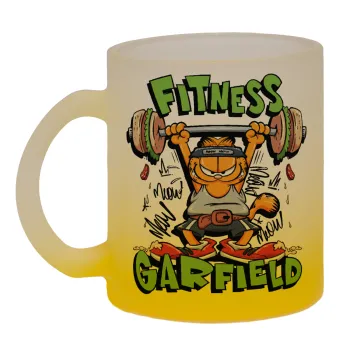 Garfield Fitness, Κούπα γυάλινη δίχρωμη με βάση το κίτρινο ματ, 330ml