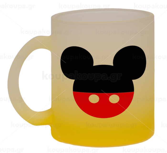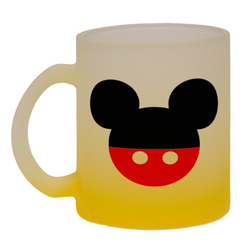 Mickey head, Κούπα γυάλινη δίχρωμη με βάση το κίτρινο ματ, 330ml
