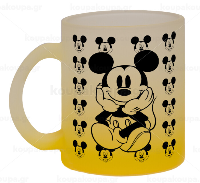 Mickey, Κούπα γυάλινη δίχρωμη με βάση το κίτρινο ματ, 330ml