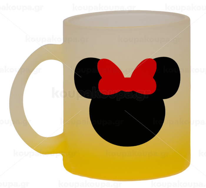 Minnie head, Κούπα γυάλινη δίχρωμη με βάση το κίτρινο ματ, 330ml