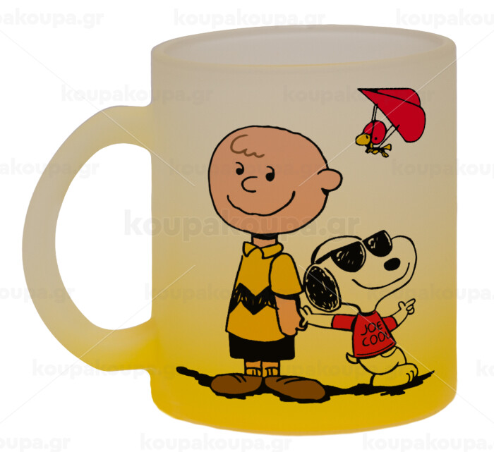 Snoopy & Joe, Κούπα γυάλινη δίχρωμη με βάση το κίτρινο ματ, 330ml