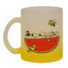 Snoopy summer, Κούπα γυάλινη δίχρωμη με βάση το κίτρινο ματ, 330ml
