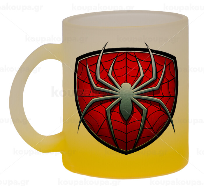Spider-man, Κούπα γυάλινη δίχρωμη με βάση το κίτρινο ματ, 330ml