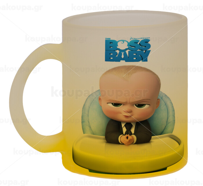 The boss baby, Κούπα γυάλινη δίχρωμη με βάση το κίτρινο ματ, 330ml