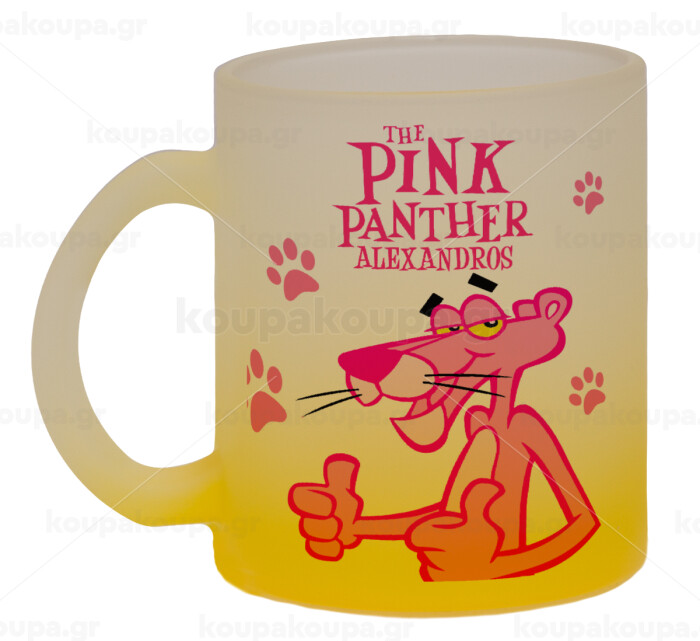 The pink panther, Κούπα γυάλινη δίχρωμη με βάση το κίτρινο ματ, 330ml