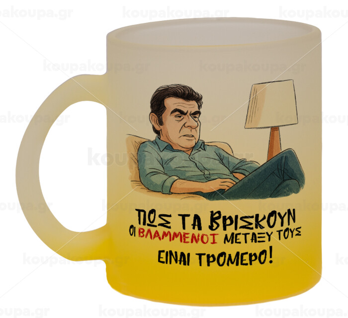 ΠΩΣ ΤΑ ΒΡΙΣΚΟΥΝ ΟΙ ΒΛΑ....ΝΟΙ ΜΕΤΑΞΥ ΤΟΥΣ, ΕΙΝΑΙ ΤΡΟΜΕΡΟ!!!, Κούπα γυάλινη δίχρωμη με βάση το κίτρινο ματ, 330ml