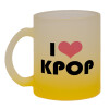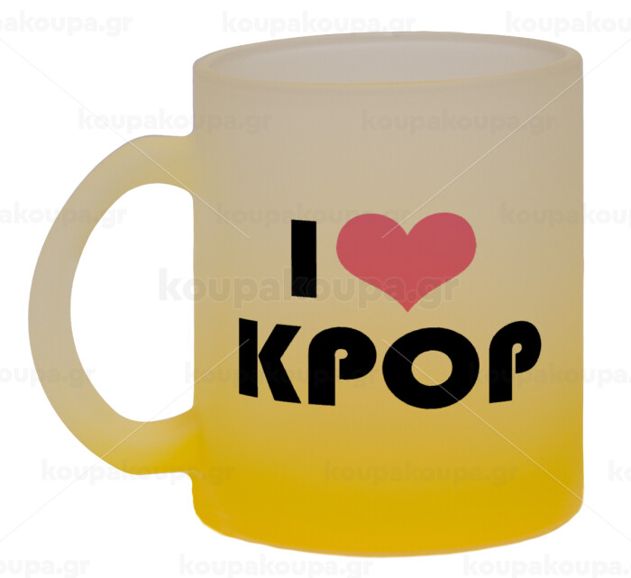 I Love KPOP, Κούπα γυάλινη δίχρωμη με βάση το κίτρινο ματ, 330ml