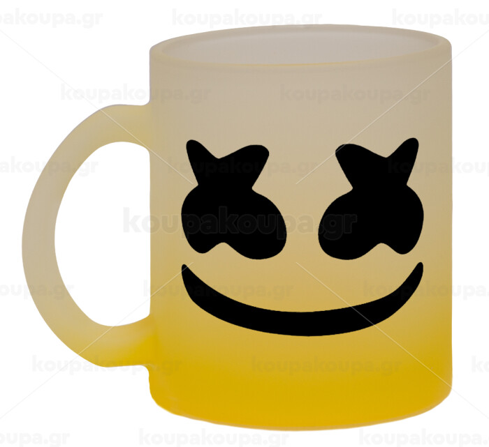 Marshmello, Κούπα γυάλινη δίχρωμη με βάση το κίτρινο ματ, 330ml