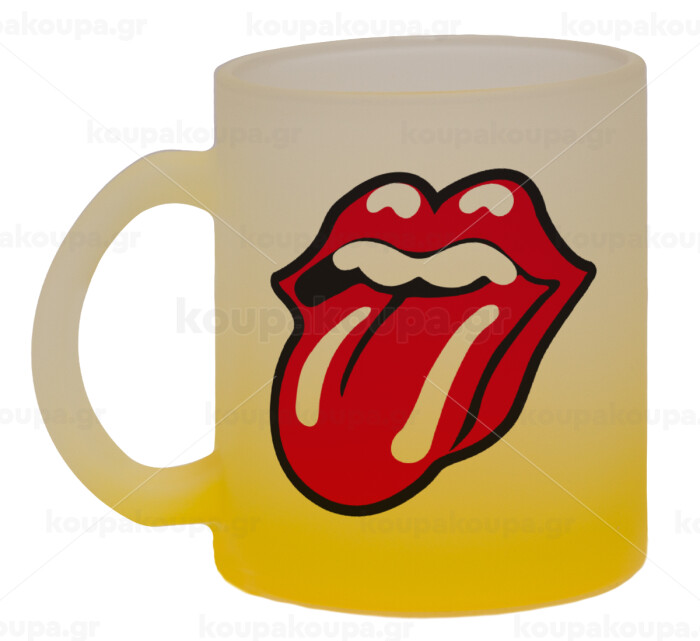 Rolling Stones Kiss, Κούπα γυάλινη δίχρωμη με βάση το κίτρινο ματ, 330ml