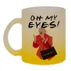 Friends,. oh my eyes Phoebe, Κούπα γυάλινη δίχρωμη με βάση το κίτρινο ματ, 330ml